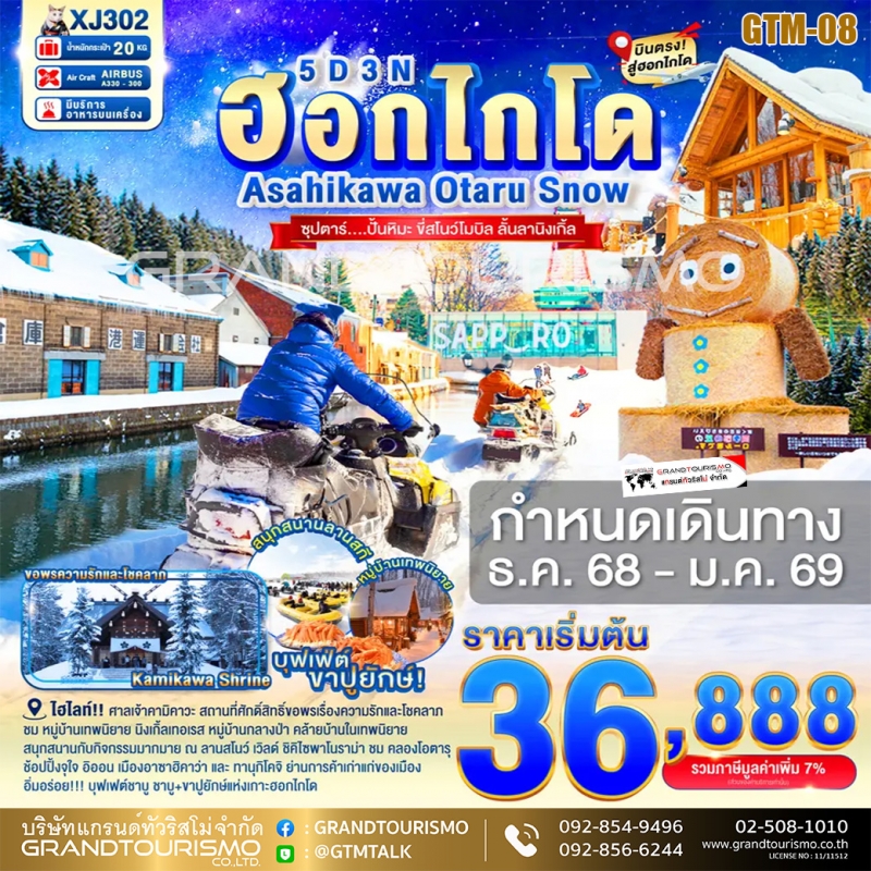 ทัวร์ญี่ปุ่น ฮอกไกโด ฟุราโน่ อาซาฮิคาว่า สวนสัตว์อะซาฮิยาม่า ลานสโนว์เวิลด์ ซัปโปโร โอตารุ 5วัน3คืน ธ.ค.68-ม.ค.69