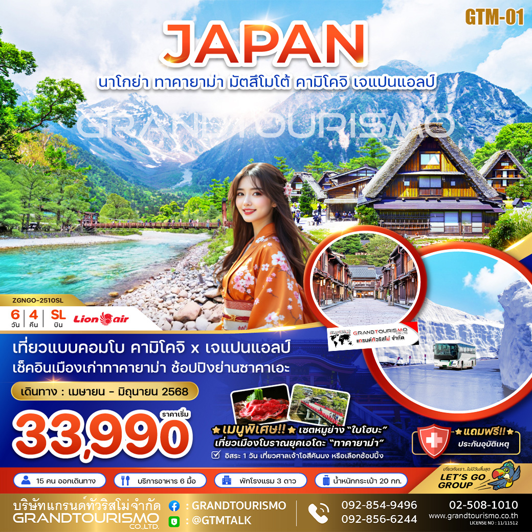 ทัวร์ญี่ปุ่น นาโกย่า ทาคายาม่า มัตสึโมโต้ คามิโคจิ เจแปนแอลป์ (อิสระ1วัน) 6วัน4คืน เม.ย.-มิ.ย.68
