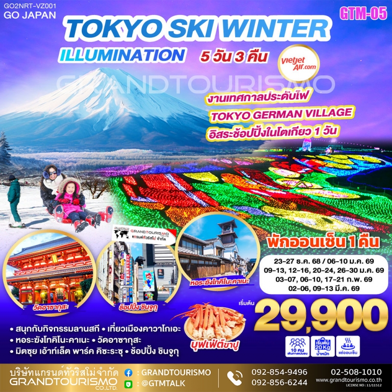 ทัวร์ญี่ปุ่น โตเกียว คาวาโกเอะ คาวากุจิโกะ ลานสกี (อิสระ1วัน) 5วัน3คืน ธ.ค.68-มี.ค.69