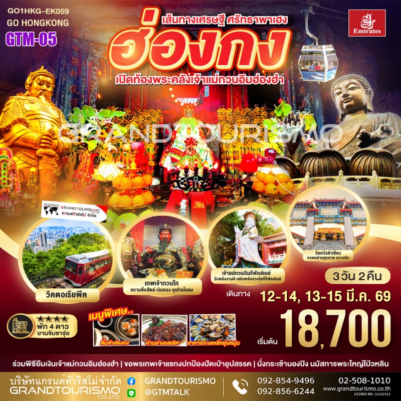 ทัวร์ฮ่องกง พิธีเปิดท้องพระคลังวัดเจ้าแม่กวนอิมฮองฮำ วัดหวังต้าเซียน วัดแชกงหมิว วัดหยวนหยวน 3 วัน 2 คืน 13-15 มี.ค. 69