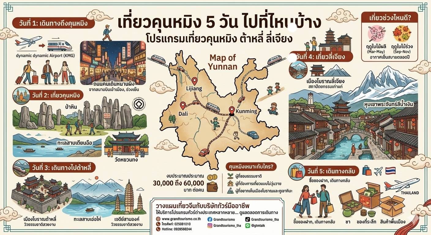 เที่ยวคุนหมิง 5 วัน ไปที่ไหนบ้าง โปรแกรมเที่ยวคุนหมิง ต้าหลี่ ลี่เจียง