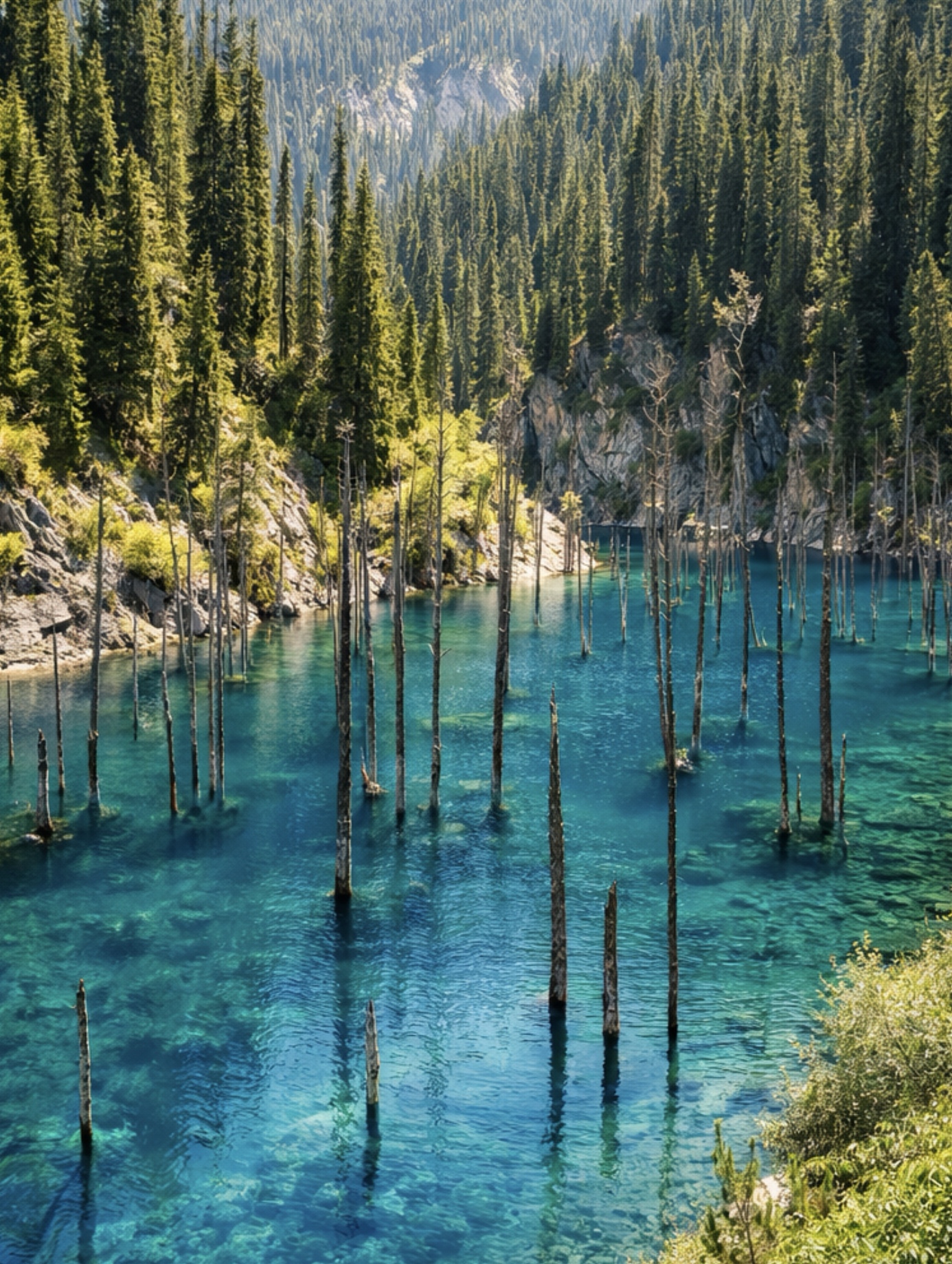 Kaindy Lake มีเอกลักษณ์ไม่เหมือนที่ใดในโลก