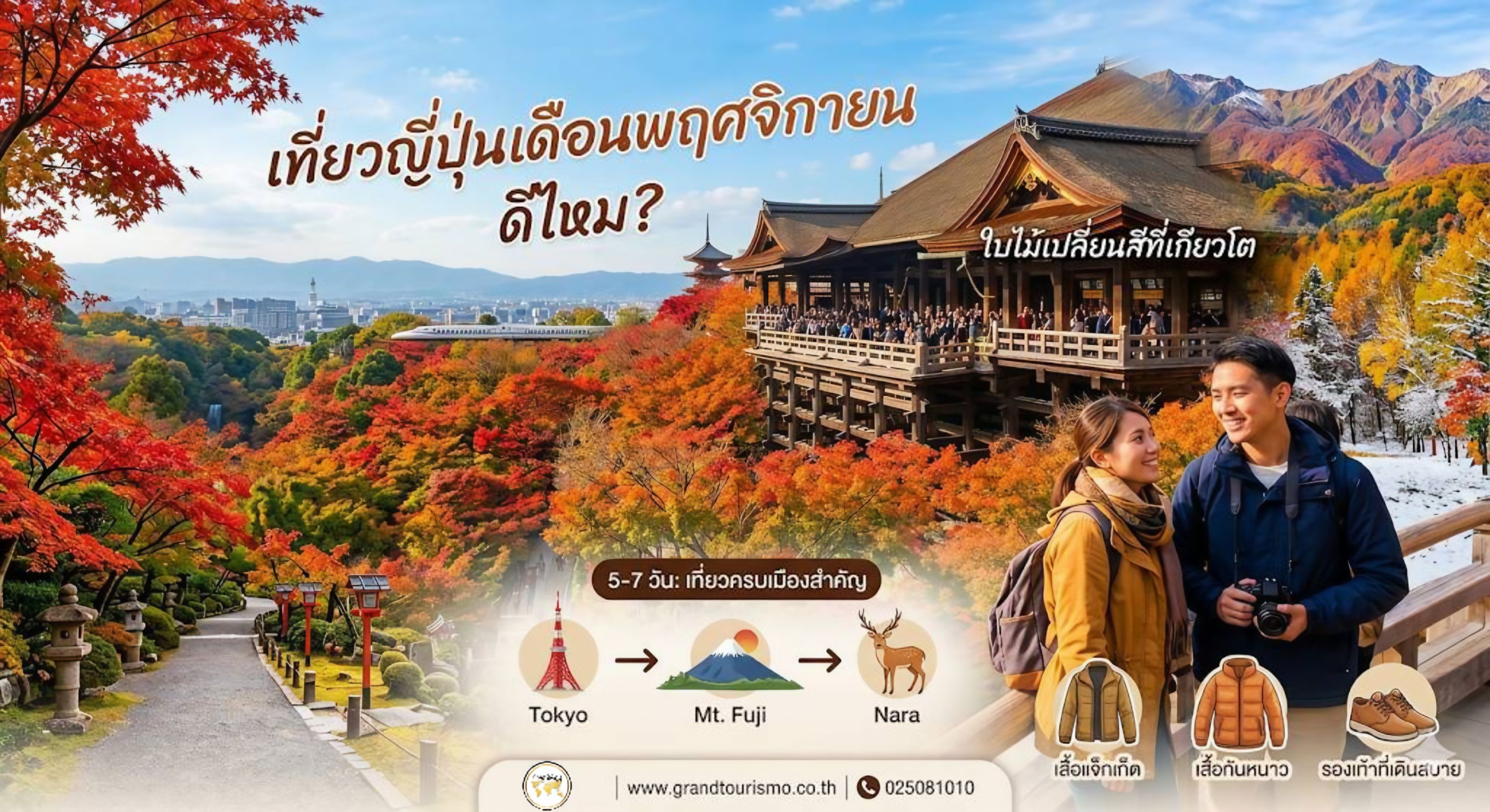 นักท่องเที่ยวจำนวนมากเลือกเดินทางมาเที่ยวญี่ปุ่นในช่วงเดือนพฤศจิกายน เพราะอากาศกำลังดี ไม่หนาวจัด และสามารถชมวิวธรรมชาติที่สวยงามได้ทั่วประเทศ
