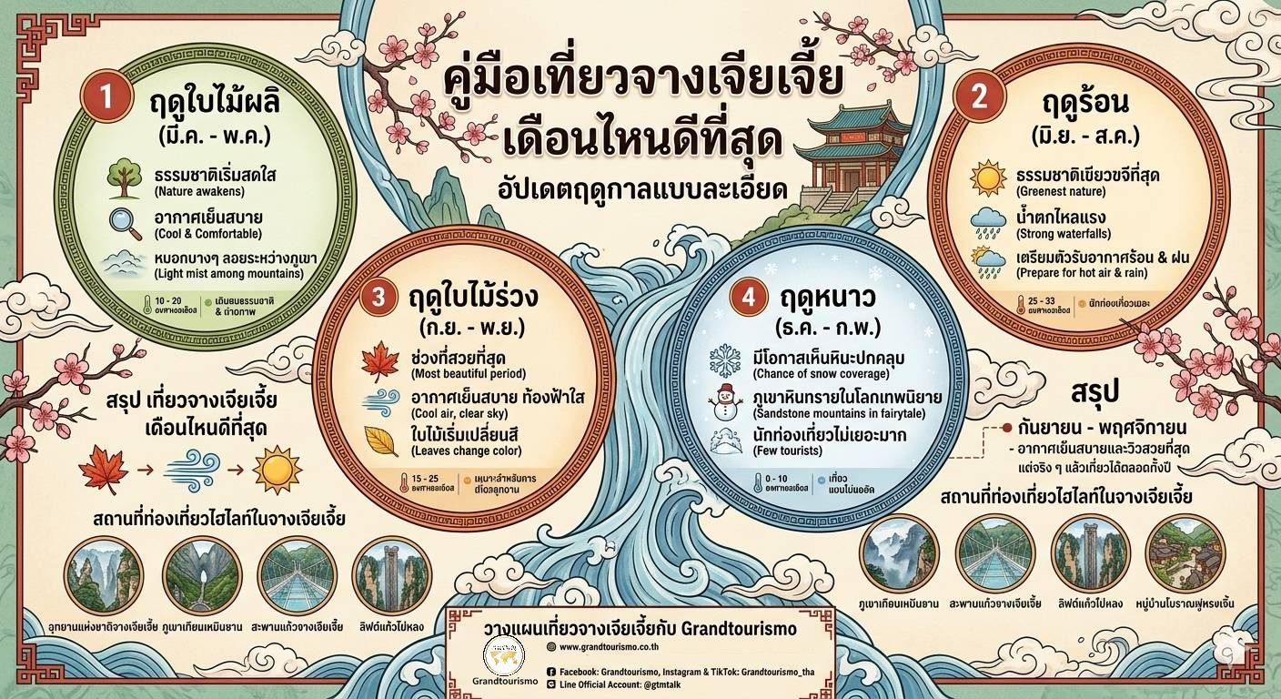 คำถามที่นักท่องเที่ยวมักถามบ่อยคือ เที่ยวจางเจียเจี้ยเดือนไหนดีที่สุด บทความนี้จะอธิบายฤดูกาลต่าง ๆ เพื่อช่วยให้คุณเลือกช่วงเวลาที่เหมาะสมที่สุดสำหรับการเดินทาง