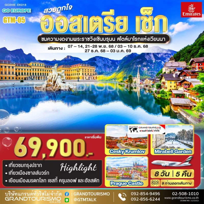 ข้อมูลเที่ยว์ออสเตรีย ทัวร์ออสเตรีย เวียนนา ซาลซ์บูร์ก 5 วัน 4 คืน ไฮไลท์พระราชวังเชินบรุนน์และเมืองเก่าซาลซ์บูร์ก