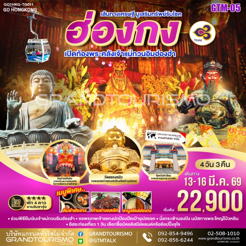 ทัวร์ฮ่องกง ยืมเงินเจ้าแม่กวนอิมฮองฮำ เจ้าแม่ทับทิมทินหัว วัดกวนไท เจ้าแม่กวนอ่าวรีพัลส์เบย์ วัดหลินฟ้า วัดหม่านโม 4วัน3คืน 11-14มี.ค.69