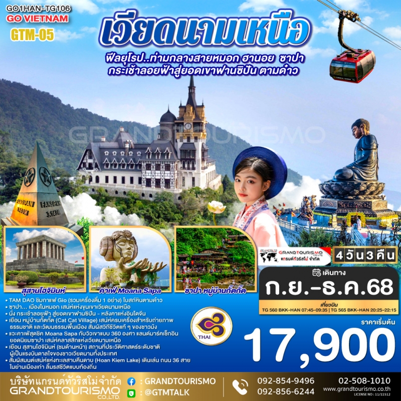 ทัวร์เวียดนามเหนือ ฮานอย ตามด๋าว ซาปา ฟานซิปัน (รวมค่ากระเช้าฟานซิปันแล้ว) ถนน36สาย ทะเลสาบคืนดาบ แกรนด์เวิลด์ฮานอย 4วัน3คืน เม.ย.-มิ.ย.69 BY ET
