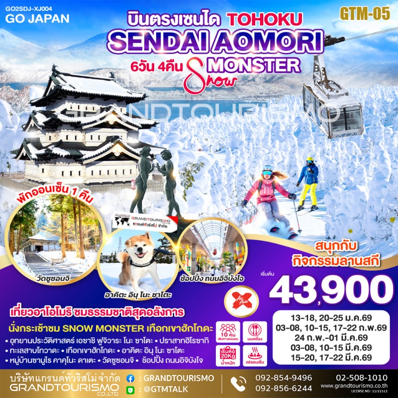 ทัวร์ญี่ปุ่น เซนได บินตรงเซนได อิวาเตะ โทวาดะ SNOW MONSTER ลานสกี หมู่บ้านซามูไร 6วัน4คืน ม.ค.-มี.ค.69
