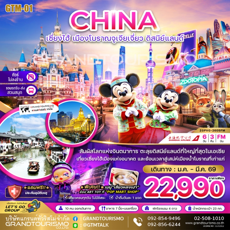 ทัวร์จีน เซี่ยงไฮ้ โบราณจูเจียเจี่ยว ดิสนีย์แลนด์ คาเฟ่หมี อู่คัง ซินเทียนตี้ นอร์ธบันกรีนแลนด์ (ไม่ลงร้าน) 6วัน3คืน ม.ค.-มี.ค.69