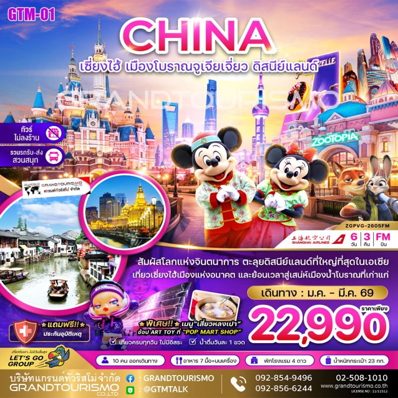 ทัวร์จีน เซี่ยงไฮ้ (ไม่ลงร้าน) (อิสระ1วัน หรือ ไปดิสนีย์แลนด์) หาดไว่ทาน ถนนนานจิง นอร์ธบันด์ ตลาดร้อยปี จูเจียเจี่ยว อู่คัง ซินเทียนตี้ คาเฟ่หมี 6วัน3คืน มี.ค.69 BY FM