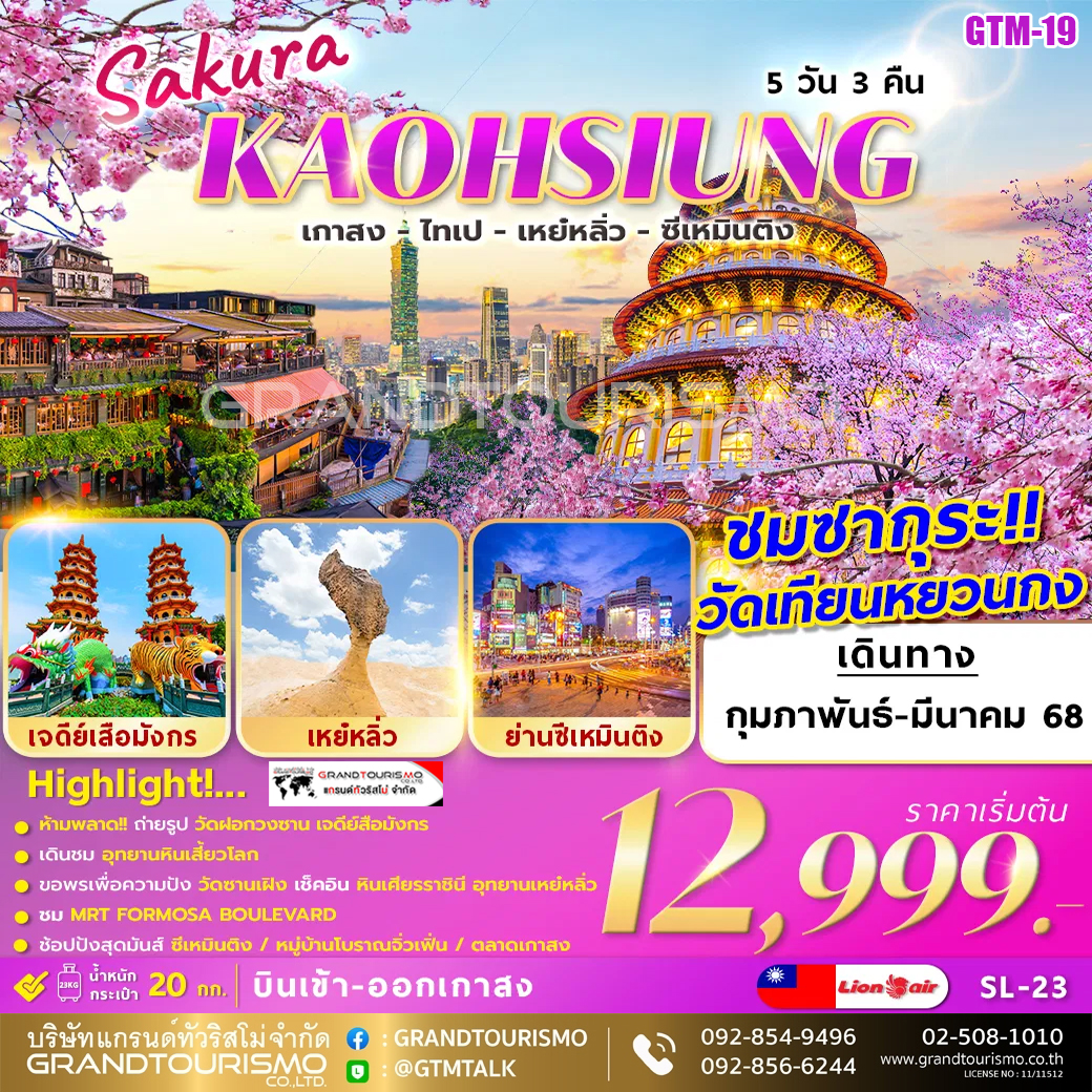 ทัวร์ไต้หวัน ไถจง ไทเป เกาสง (ชมซากุระ) 5วัน3คืน ก.พ.-มี.ค.68