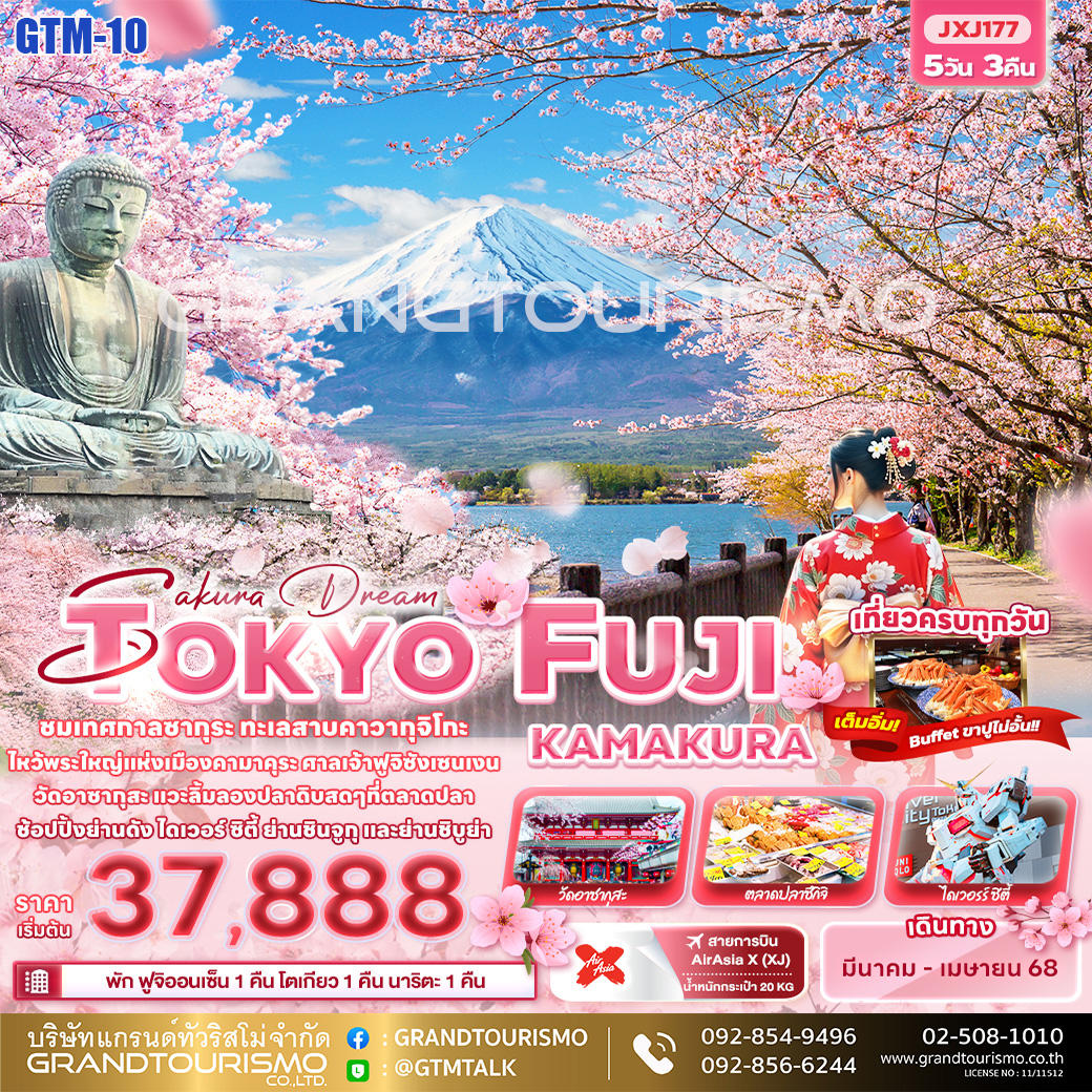 ทัวร์ญี่ปุ่น โตเกียว ฟูจิ ยามานาชิ คาวากูจิโกะ 5วัน3คืน มี.ค.-เม.ย.68
