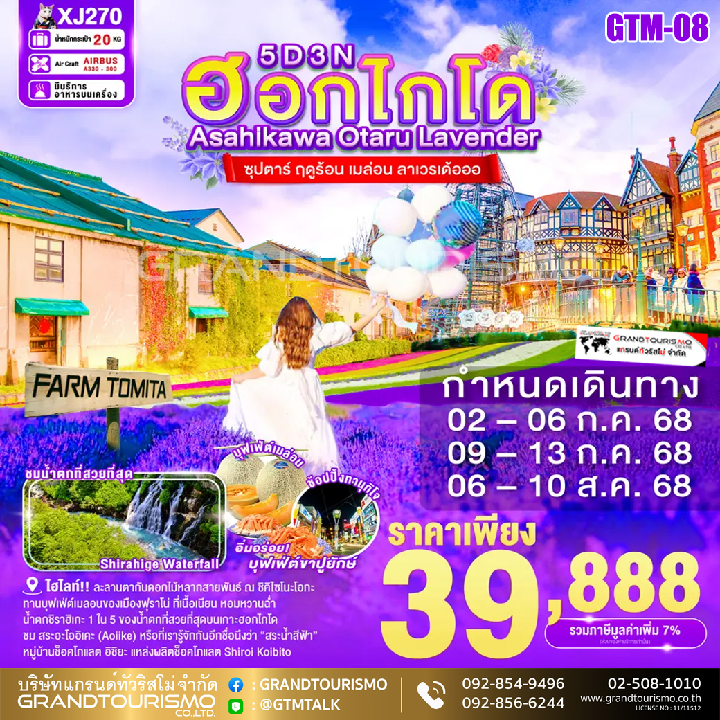 ทัวร์ญี่ปุ่น ฮอกไกโด บิเอะ อาซาฮิคาว่า ฟุราโน่ ซัปโปโร โอตารุ 5วัน3คืน ก.ค.-ส.ค.68