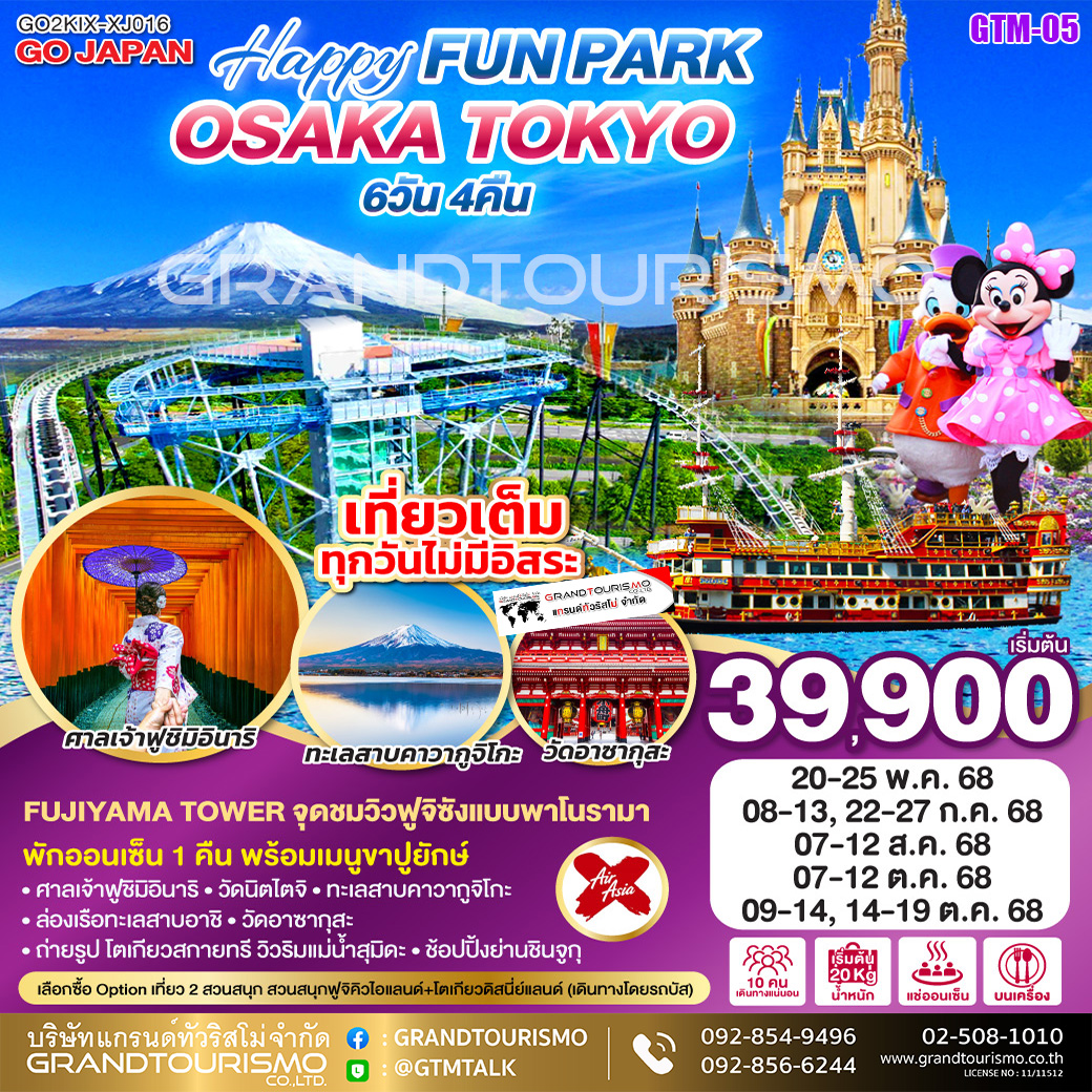 ทัวร์ญี่ปุ่น โอซาก้า โตเกียว เกียวโต นาโกย่า สวนสนุกฟูจิคิวไอแลนด์ 6วัน4คืน พ.ค.-ต.ค68