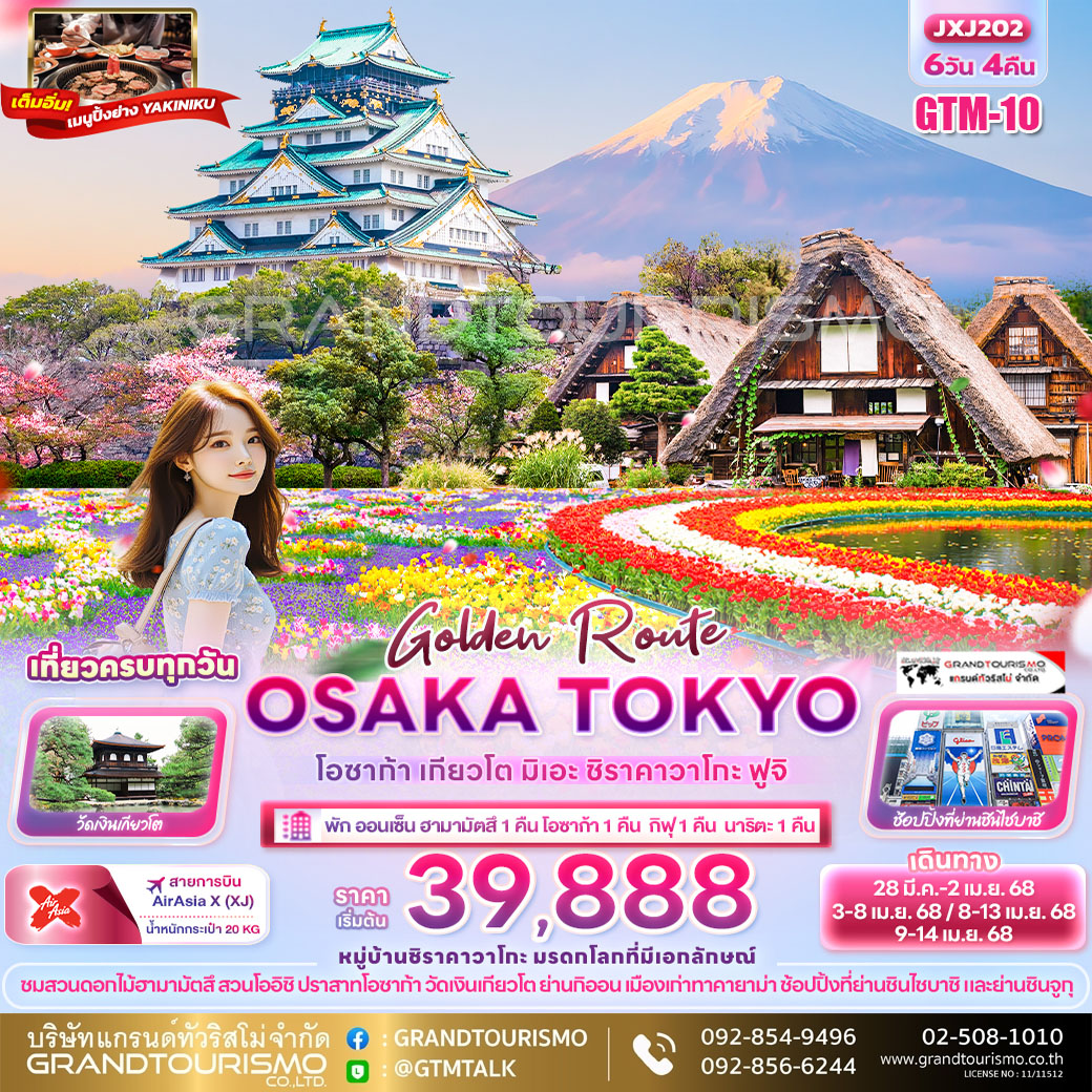 ทัวร์ญี่ปุ่น โอซาก้า โตเกียว เกียวโต มิเอะ ชิราคาวาโกะ ฟูจิ 6วัน4คืน เม.ย.68
