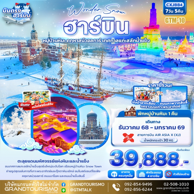ทัวร์จีน ฮาร์บิน ไม่ลงร้าน พักหมู่บ้านหิมะ ยาปู้ลี่ คฤหาสน์วอลการ์ เทศกาลแกะสลักน้ำแข็ง สวนสตาลิน จัตุรัสโบสถ์เซนต์โซเฟีย 7 วัน 5 คืน ธ.ค.68-ม.ค.69