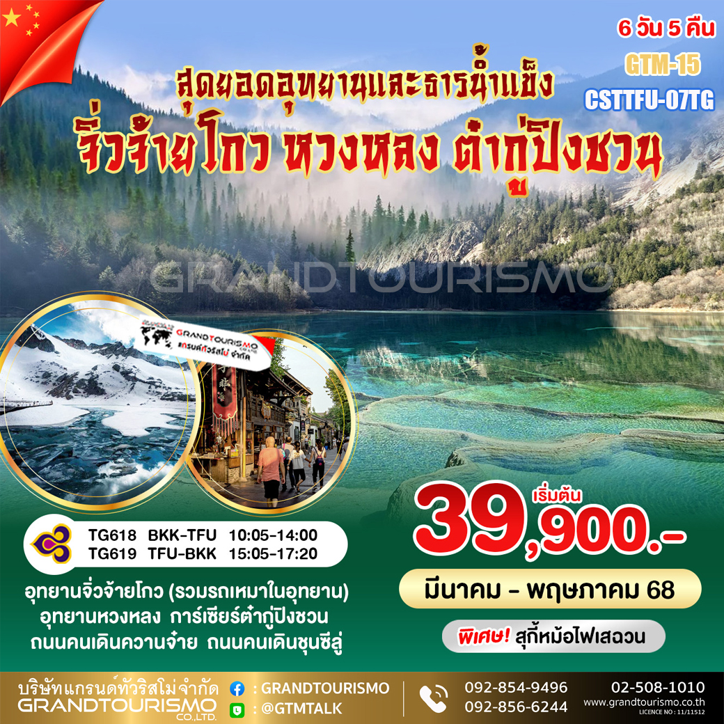 ทัวร์จีน เฉิงตู ไม่เข้าร้านช้อป เม่าเสี้ยน จิ่วจ้ายโกว หวงหลง ต๋ากูปิงชวน รถไฟความเร็วสูง โชว์เปลี่ยนหน้ากาก 6 วัน 5 คืน มี.ค.-พ.ค. 68