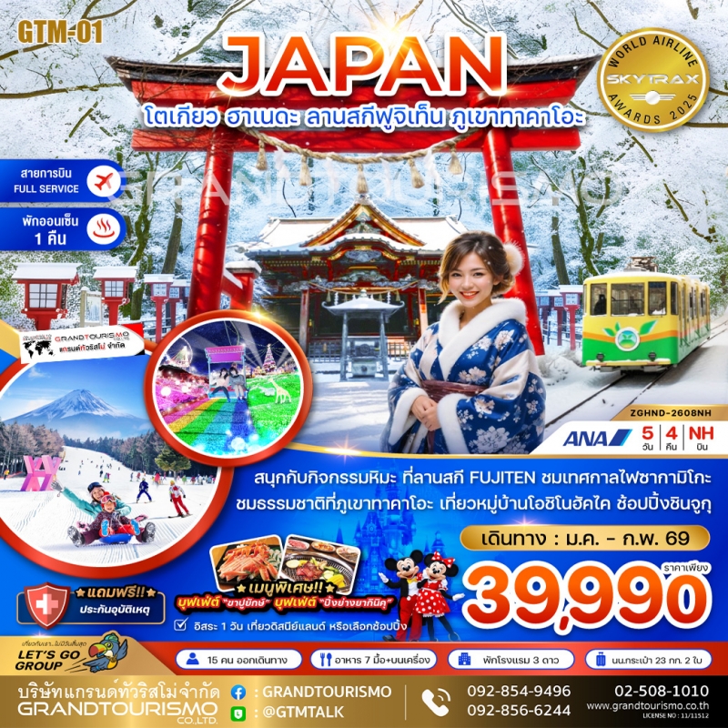 ทัวร์ญี่ปุ่น โตเกียว ฮาเนดะ ลานสกีฟูจิเท็น คาวาโกเอะ หมู่บ้านโอชิโนะฮัคไค ภูเขาทาคาโอะ (อิสระ1วัน) 5วัน4คืน ม.ค.-ก.พ.69