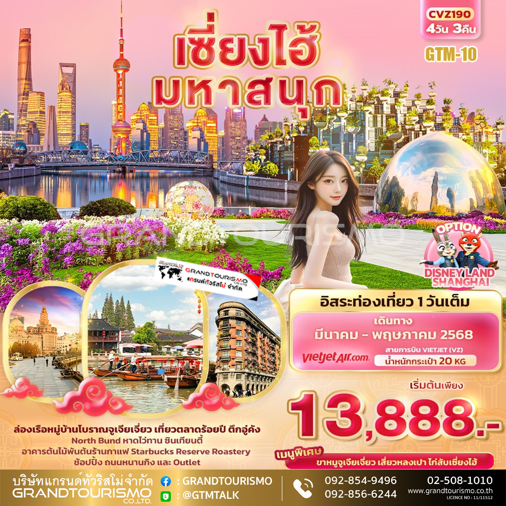 ทัวร์จีน เซี่ยงไฮ้ อิสระ 1 วัน เมืองโบราณจูเจียเจี่ยว หาดไว่ทาน ถนนหนานกิง ร้านสตาร์บัคส์ 4 วัน 3 คืน มี.ค.-พ.ค. 68