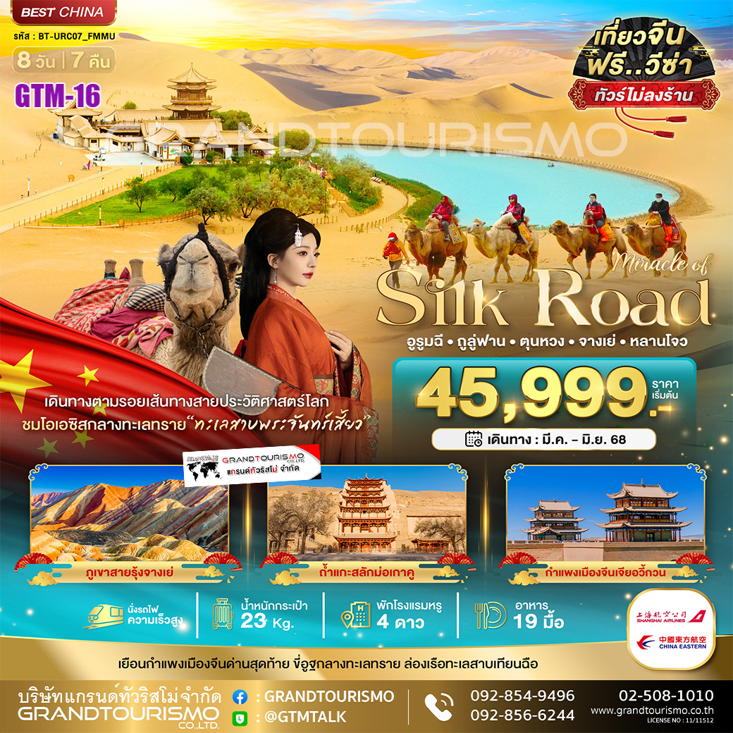 ทัวร์จีน เส้นทางสายไหม อูรุมฉี ถูหลู่ฟาน ตุนหวง จางเย่ หลานโจว (ไม่ลงร้าน) 8วัน7คืน เม.ย.-ก.ค.68