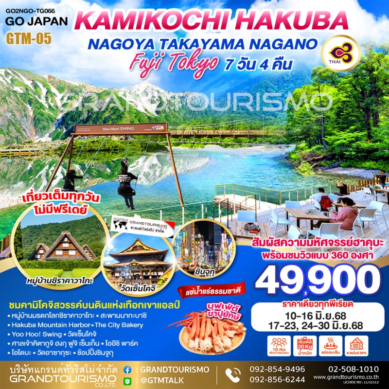 ทัวร์ญี่ปุ่น โตเกียว ฟูจิ คามิโคจิ ฮาคุบะ นาโกย่า ทาคายาม่า นากาโน่ 7วัน4คืน มิ.ย.68