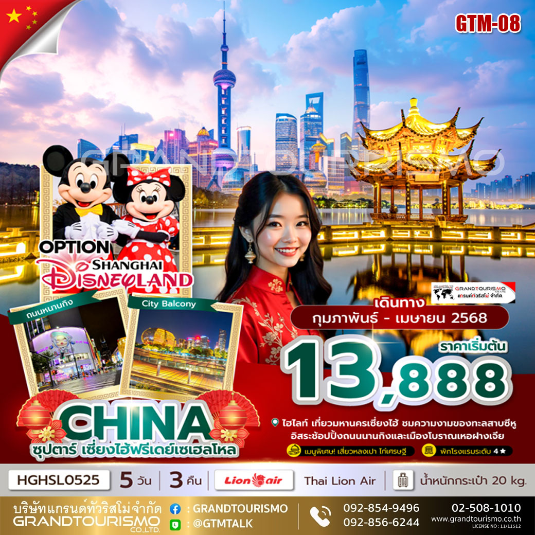 ทัวร์จีน เซี่ยงไฮ้ หางโจว (อิสระ1วัน) 5วัน3คืน ก.พ.-เม.ย.68