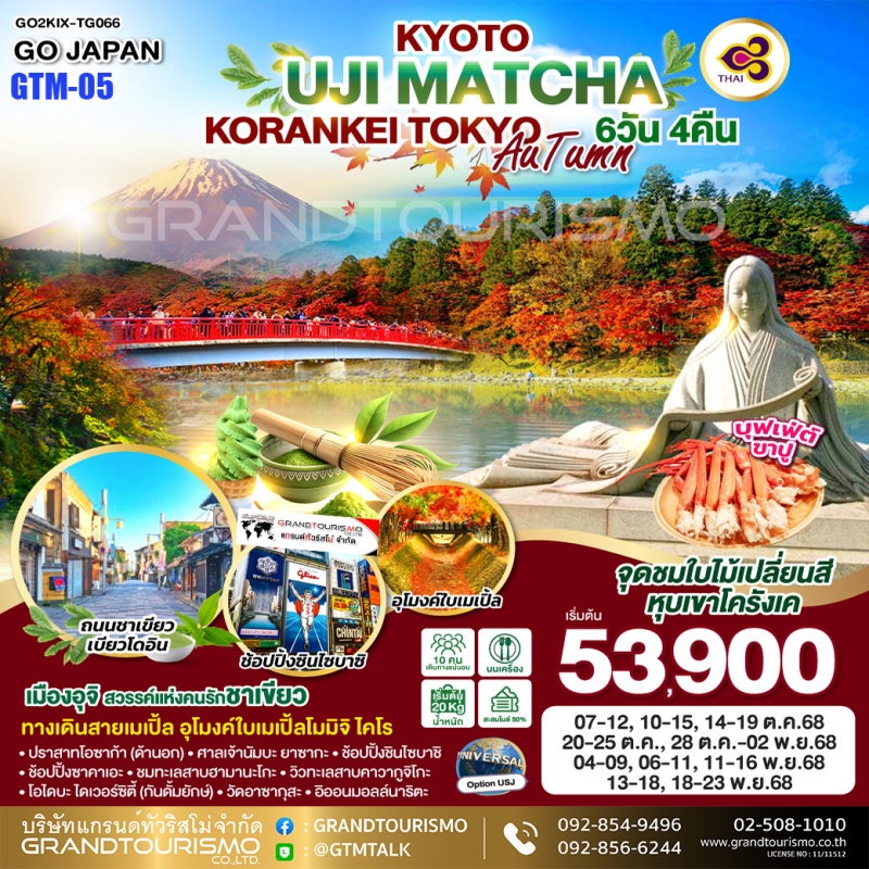 ทัวร์ญี่ปุ่น โอซาก้า นาโกย่า โตเกียว เกียวโต อุจิ โตโยต้า หุบเขาโครังเค ชิสุโอกะ คาวากูจิโกะ อุโมงค์ใบเมเปิ้ล 6วัน4คืน ต.ค.-พ.ย.68