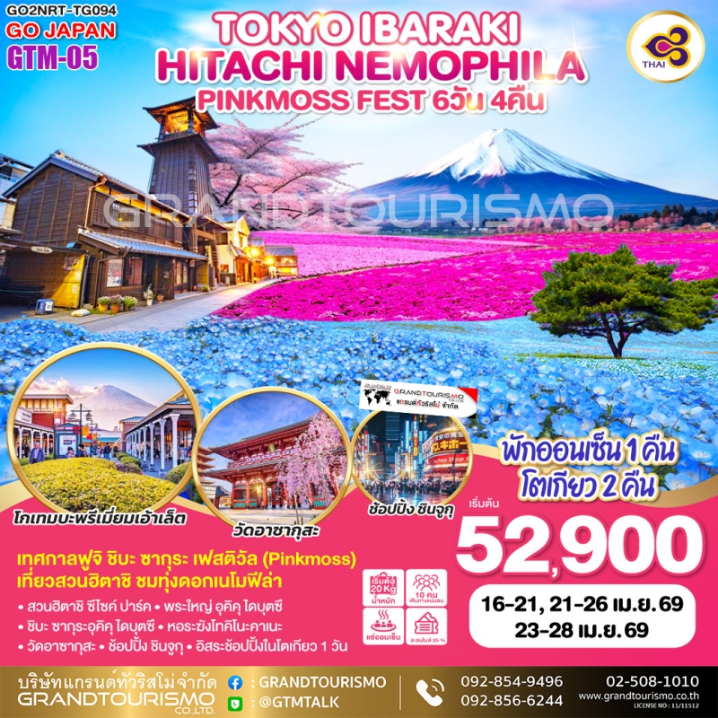 ทัวร์ญี่ปุ่น โตเกียว อิบารากิ สวนฮิตาชิซีไซค์ ทุ่งดอกเนโมฟีล่า คาวาโกเอะ คาวากูจิโกะ (อิสระ1วัน) 6วัน4คืน เม.ย.69