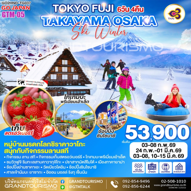 ทัวร์ญี่ปุ่น โตเกียว โอซาก้า นาโกย่า ฟูจิ ทาคายาม่า ลานสกี ชิราคาวาโกะ 6วัน4คืน ก.พ.-มี.ค.69