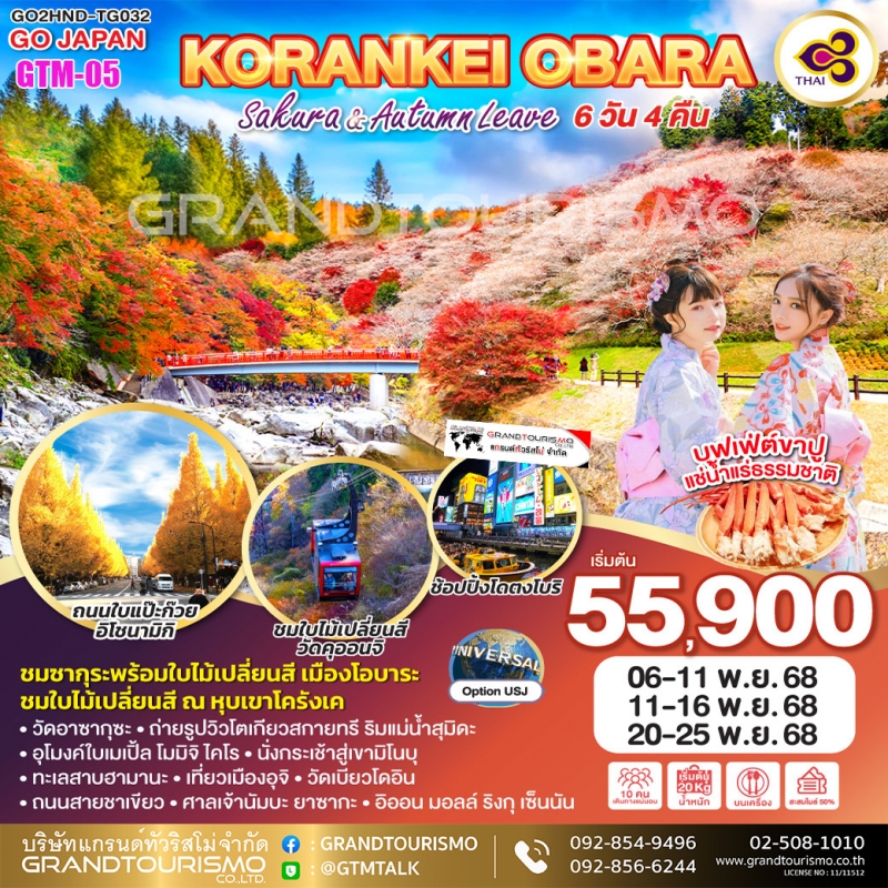 ทัวร์ญี่ปุ่น โตเกียว โอซาก้า อุโมงค์ใบเมเปิ้ล อุจิ นาโกย่า โอบาระ หุบเขาโครังเค (อิสระ1วัน) 6วัน4คืน พ.ย.68