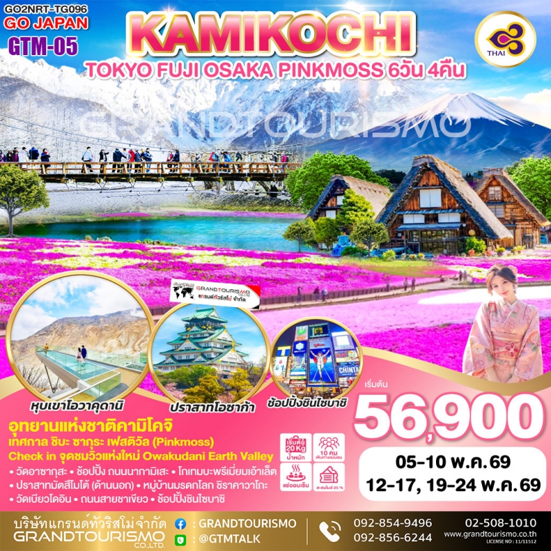 ทัวร์ญี่ปุ่น โตเกียว ฟูจิ โอซาก้า นากาโน่ Pinkmoss คาวากุจิโกะ คามิโคจิ อุจิ ชิราคาวาโกะ 6วัน4คืน พ.ค.69