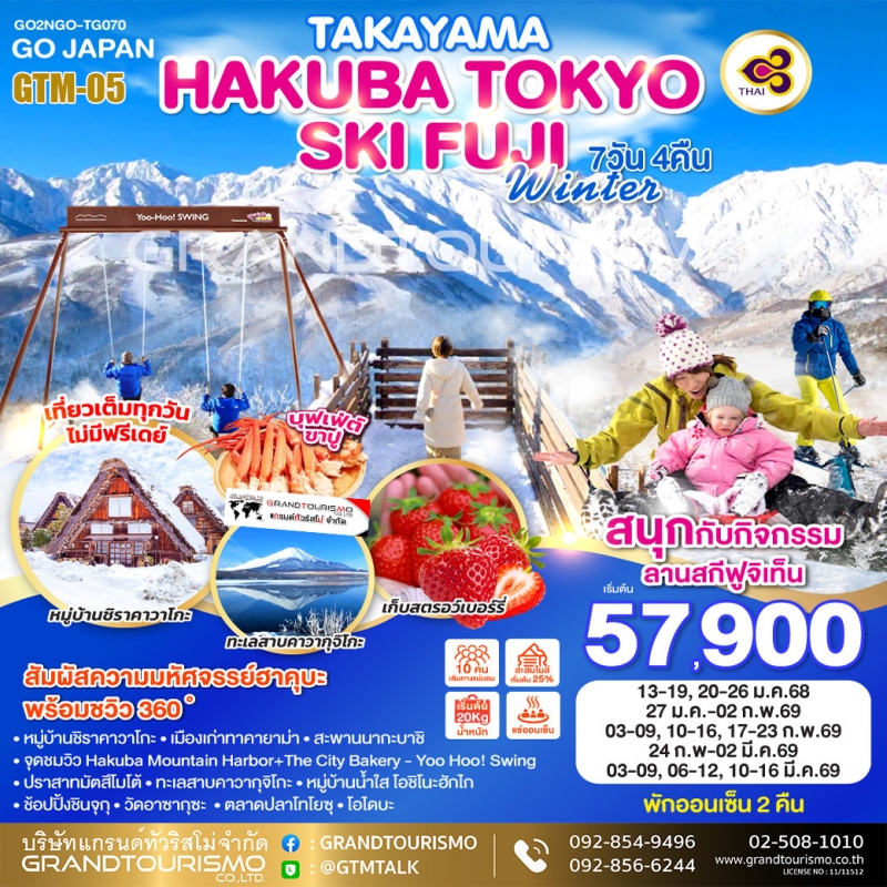 ทัวร์ญี่ปุ่น โตเกียว นาโกย่า ชิราคาวาโกะ ฮาคุบะ กอนโดล่าลิฟท์ ลานสกีฟูจิเท็น เก็บสตรอว์เบอร์รี คาวากุจิโกะ 7วัน4คืน ม.ค.-มี.ค.69
