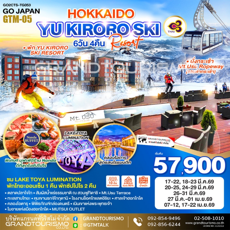ทัวร์ญี่ปุ่น ฮอกไกโด ซัปโปโร ลานสกี โอตารุ ตลาดปลาโจไก YU KIRORO SKI RESORT 6วัน4คืน มี.ค.-เม.ย.69