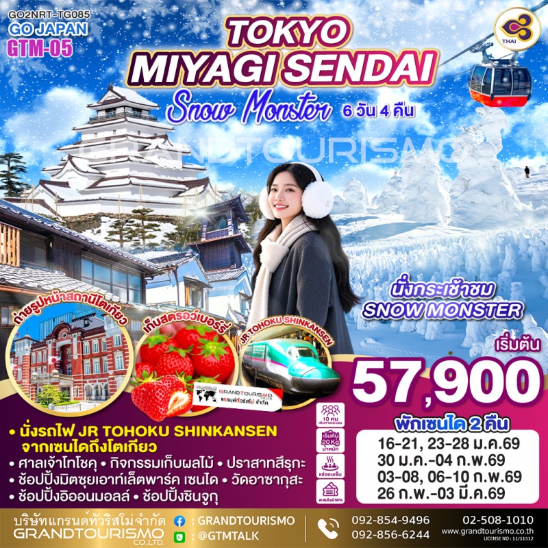 ทัวร์ญี่ปุ่น โตเกียว เซนได มิยางิ คาวาโกเอะ ไอสึวากะมัตสึ 6วัน4คืน ม.ค.-มี.ค.69 BY TG