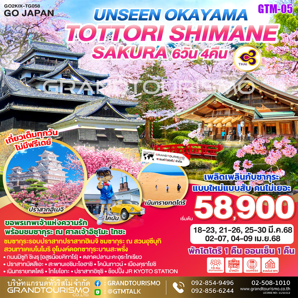 ทัวร์ญี่ปุ่น โอซาก้า ฮิเมจิ สวนทาเคเบโนโมริ ศาลเจ้าอิซุโมะไทชะ คุราโยชิ ทตโตริ เกียวโต 6วัน4คืน มี.ค.-เม.ย.68