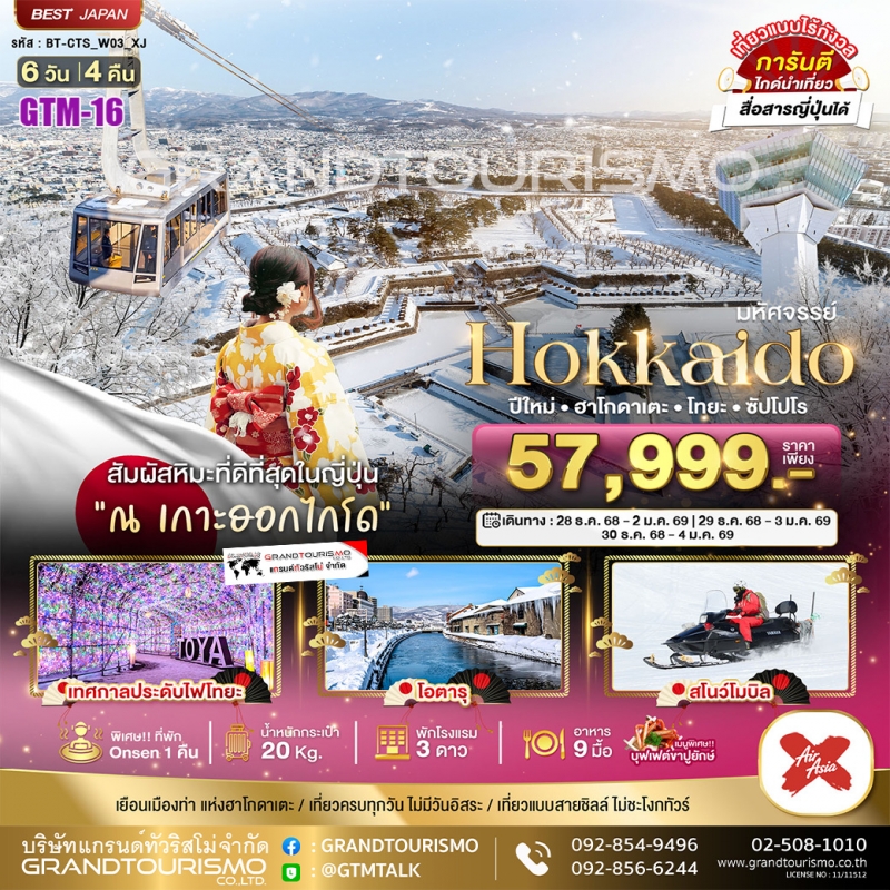 ทัวร์ญี่ปุ่น ฮอกไกโด ฮาโกดาเตะ โทยะ ซัปโปโร ตลาดปลาอาไซจิ โอตารุ 6วัน4คืน ธ.ค.68–ม.ค.69