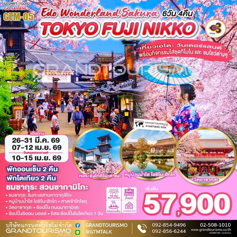 ทัวร์ญี่ปุ่น โตเกียว นิกโก้ คาวาโกเอะ สวนซากามิโกะ คาวากุจิโกะ เอโดะ วันเดอร์แลนด์ (อิสระ1วัน) 6วัน4คืน มี.ค.-เม.ย.69