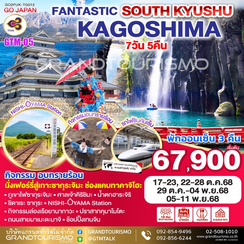 ทัวร์ญี่ปุ่น ฟุกุโอกะ คาโกชิมะ คิวชู คุมาโมโตะ ยานากาวะ เบปปุ เขาไฟซากุระจิมะ อิบูซุกิ นั่งรถไฟชินคันเซ็น 7วัน5คืน ต.ค.-พ.ย.68