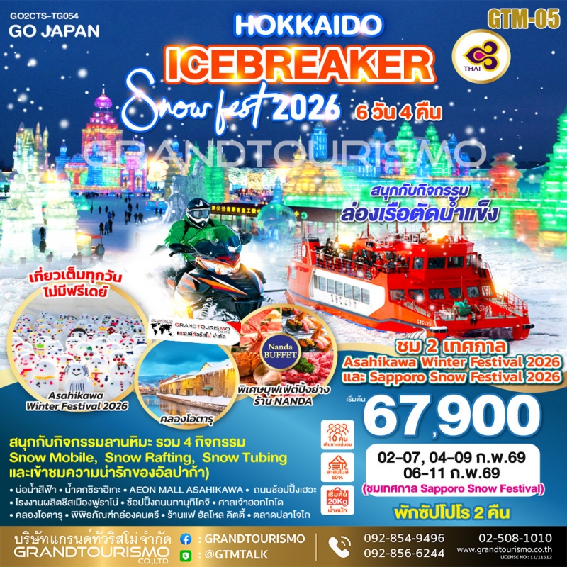 ทัวร์ญี่ปุ่น ฮอกไกโด ซัปโปโร ลานหิมะ โอตารุ ตลาดปลาโจไก SAPPORO SNOW FESTIVAL 6วัน4คืน ก.พ.69