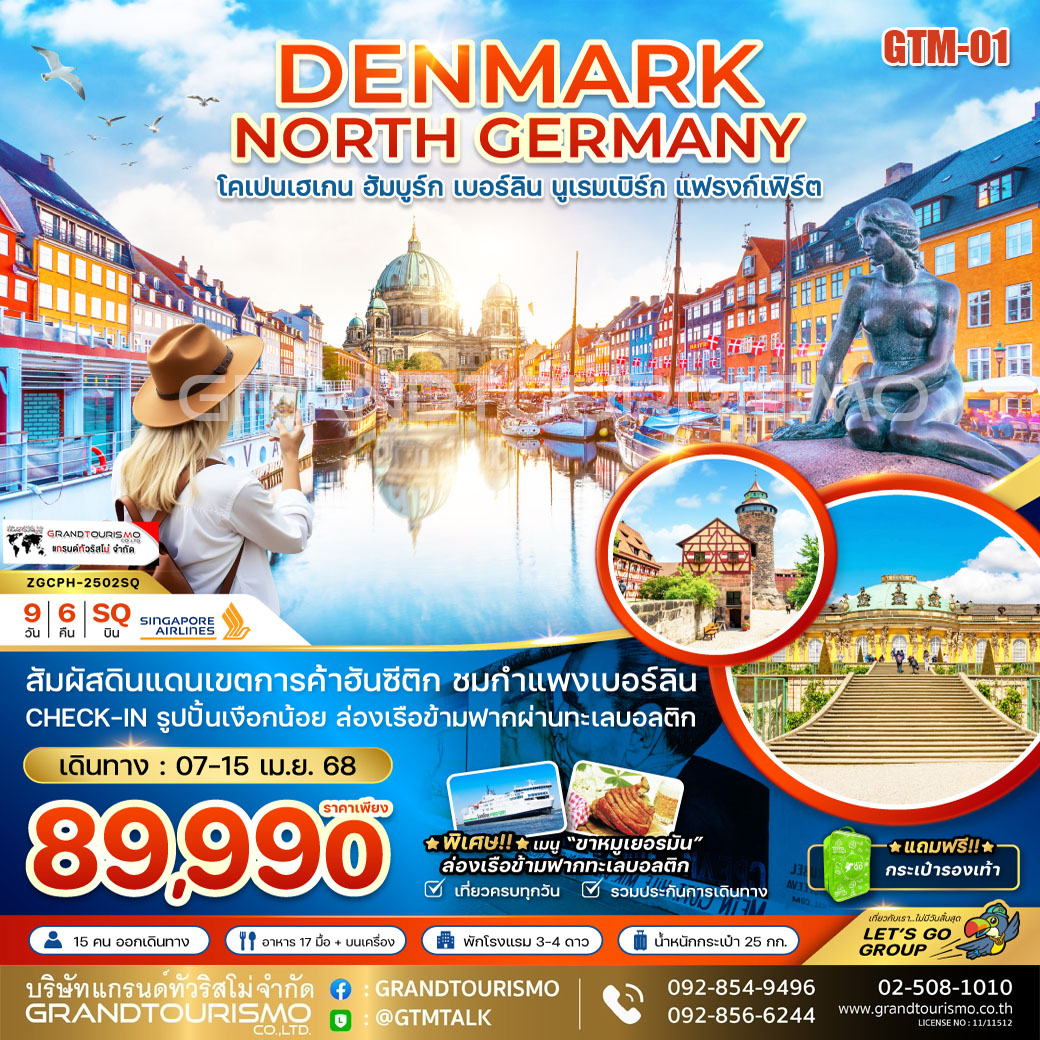ทัวร์ยุโรป เดนมาร์ก เยอรมันเหนือ โคเปนเฮเกน ฮัมบูร์ก เบอร์ลิน นูเรมเบิร์ก เเฟรงก์เฟิร์ต (เปลี่ยนเครื่อง) 9วัน6คืน 07-15 เม.ย.68
