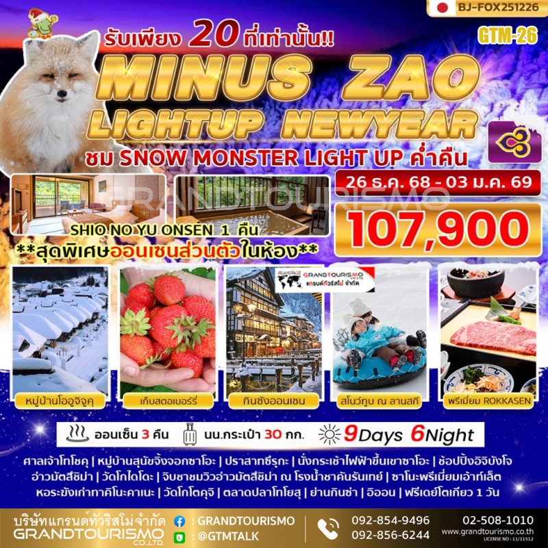 ทัวร์ญี่ปุ่น โตเกียว นิกโก้ อิสระ 1 วัน เซนได ปราสาทซึรุกะ ปีศาจหิมะ กินซังออนเซน ลานสกี อ่าวมัตสึชิม่า หมู่บ้านสุนัขจิ้งจอก 9 วัน 6 คืน 26 ธ.ค.68 -03 ม.ค.69
