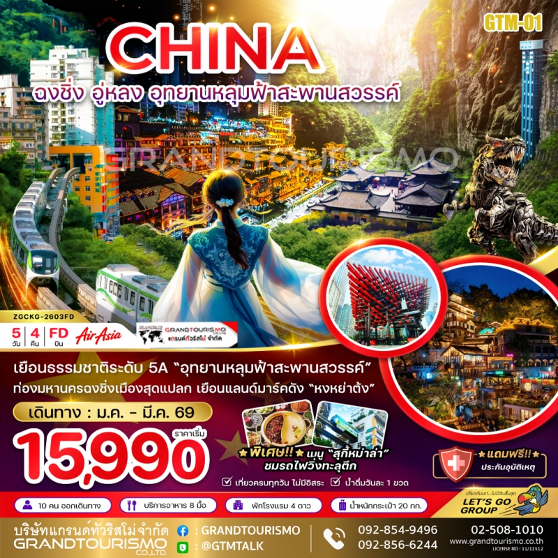 ทัวร์จีน ฉงชิ่ง อู่หลง ภูเขานางฟ้า อุทยานหลุมฟ้า (ทัวร์ฉงชิ่งไม่ลงร้าน) 4วัน3คืน มี.ค.-ต.ค.68
