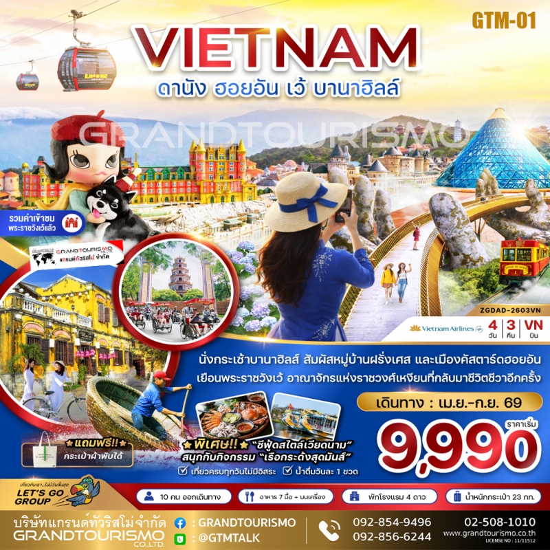 ทัวร์เวียดนาม เวียดนามกลาง ดานัง ฮอยอัน บานาฮิลล์ (พัก4ดาว) 4วัน3คืน เม.ย.-ต.ค.68