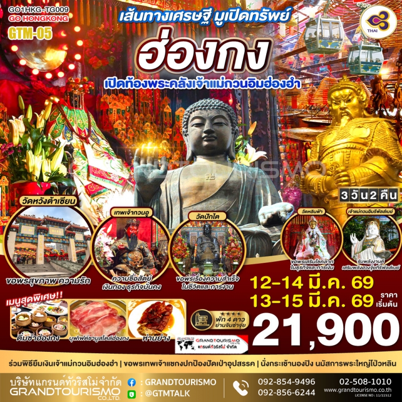 ทัวร์ฮ่องกง รีพลัส์เบย์ พิธียืมเงินเจ้าแม่กวนอิมฮองฮำ กระเช้านองปิง วัดหวังต้าเซียน วัดแชกง พระใหญ่เกาะลันเตา จิมซาจุ่ย 3 วัน 2 คืน มี.ค. 69