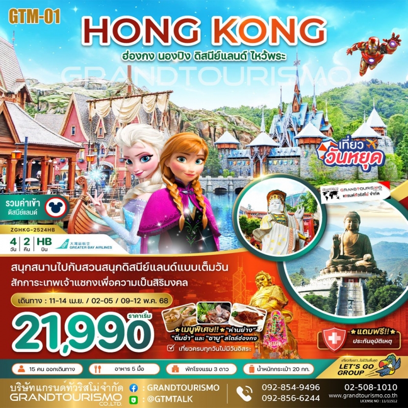 ทัวร์ฮ่องกง นั่งกระเช้านองปิง ดิสนีย์แลนด์เต็มวัน(รวมบัตร) ไหว้พระวัดแชกงหมิว หาดรีพัลเบย์ 4วัน2คืน เม.ย-พ.ค 68