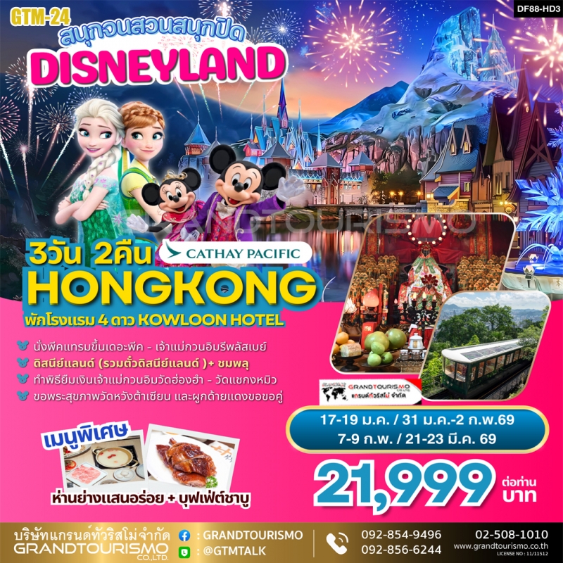 ทัวร์ฮ่องกง ดิสนีย์แลนด์ รีพลัสเบย์ วิคตอเรียพีค วัดหวังต้าเซียน วัดแชกง เจ้าแม่กวนอิมวัดฮองฮำ ช้อปปิ้งนาธาน 3 วัน 2 คืน ม.ค.- มี.ค. 69