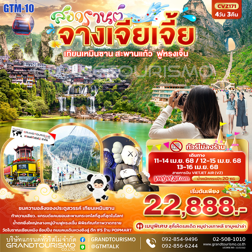 ทัวร์จีน จางเจียเจี้ย เทียนเหมินซาน สะพานแก้ว ฟูหรงเจิ้น ฉางเต๋อ ฉางซา ไม่ลงร้าน 4วัน3คืน เม.ย.68