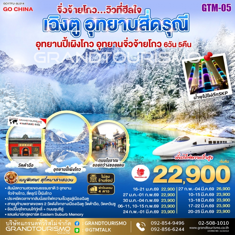 ทัวร์จีน เฉิงตู สี่ดรุณี ปี้เผิงโกว จิ่วจ้ายโกว รถไฟความเร็วสูง หมีแพนด้าปีนตึกIFS (ไม่ลงร้าน) 6วัน5คืน ม.ค.-มี.ค.69 BY SL