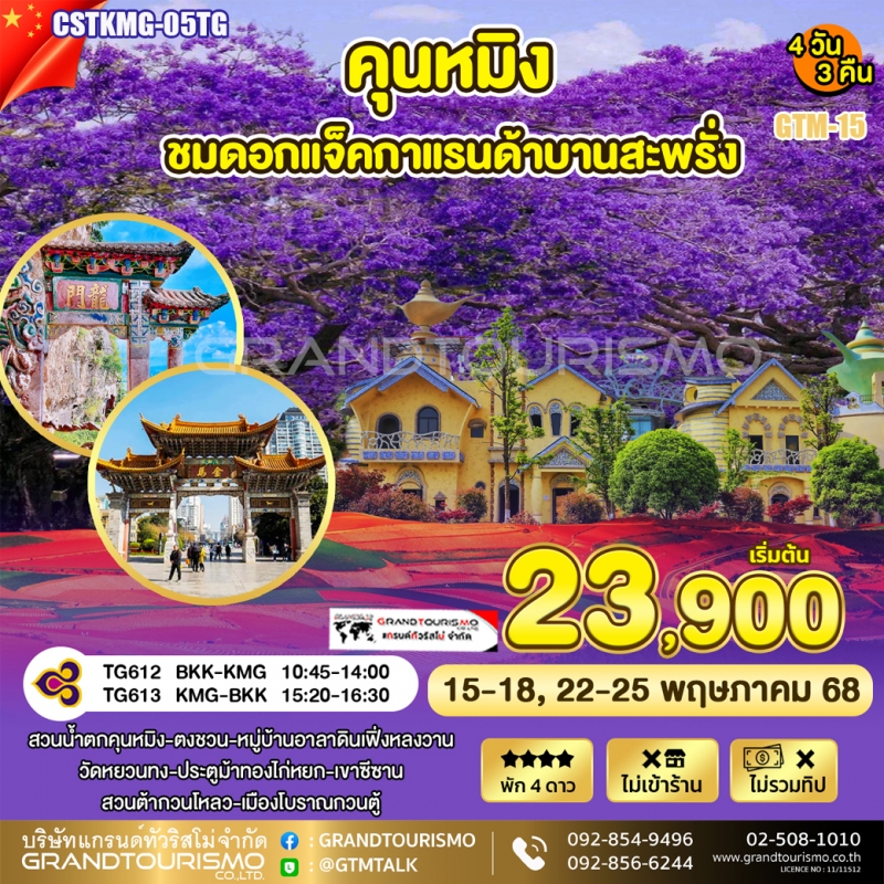 ทัวร์จีน คุนหมิง ไม่ลงร้าน ตงชวน หมู่บ้านอาลาดิน ดอกแจ็คกาแรนด้า วัดหยวนทง เขาซีซาน เมืองโบราณกวนตู้ 4 วัน 3 คืน พ.ค. 68