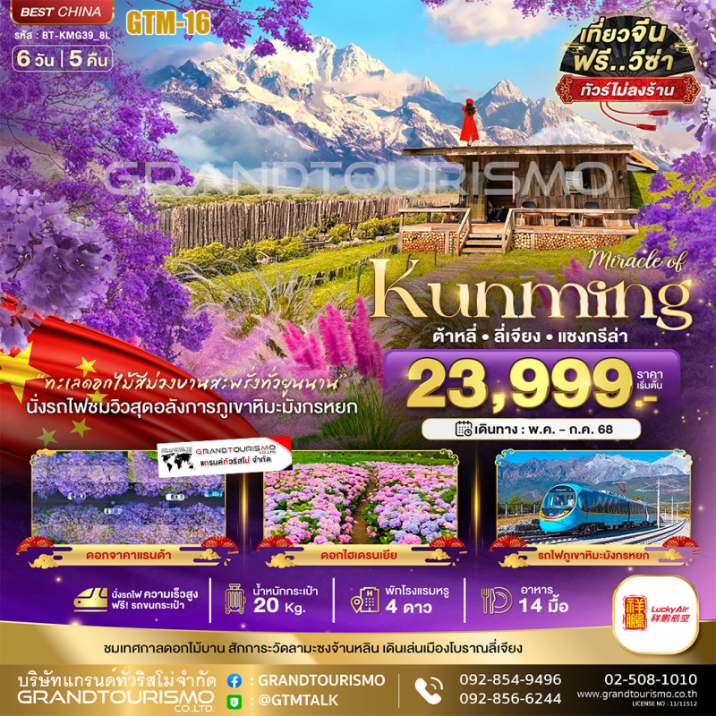 ทัวร์จีน คุนหมิง ต้าหลี่ ลี่เจียง แชงกรีล่า ภูเขาหิมะมังกรหยก (ไม่ลงร้าน) 6วัน5คืน พ.ค.-ก.ค.68